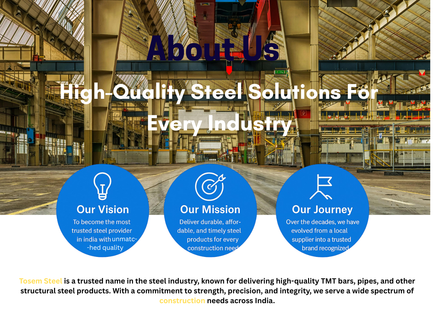 At Tosem Steel, we go beyond just supplying quality products — we deliver a service experience built on trust, reliability, and customer satisfaction. Our expert team is committed to helping you choose the right steel solutions for your project, ensuring timely delivery, transparent communication, and full support at every step. Whether it’s a small-scale construction or a large infrastructure project, we are dedicated to making your journey smooth, efficient, and successful.